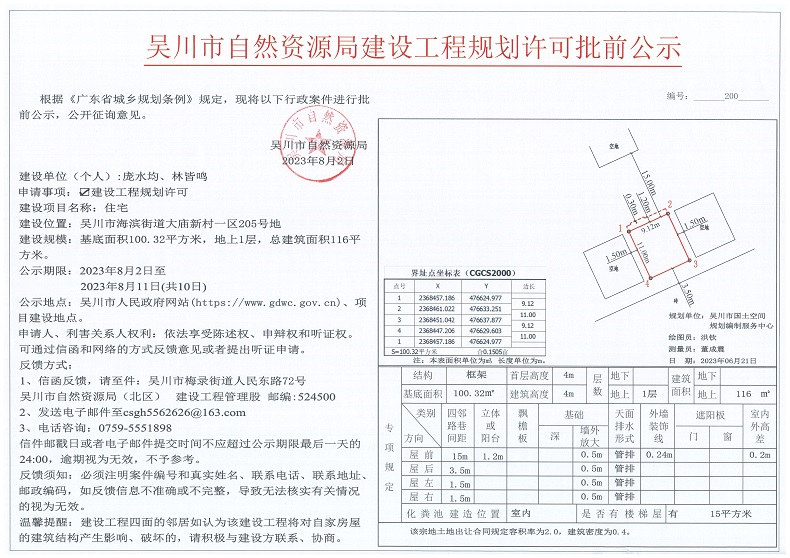 吴川市自然资源局建设工程规划许可批前公示(庞水均、林皆鸣)