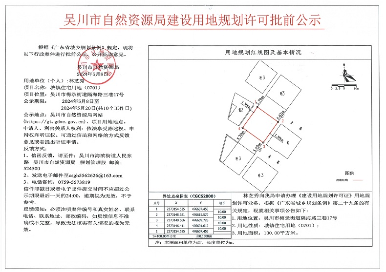 吴川市自然资源局建设用地规划许可批前公示(林芝秀)