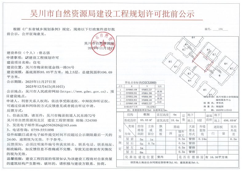 吴川市自然资源局建设工程规划许可批前公示(曾志强)