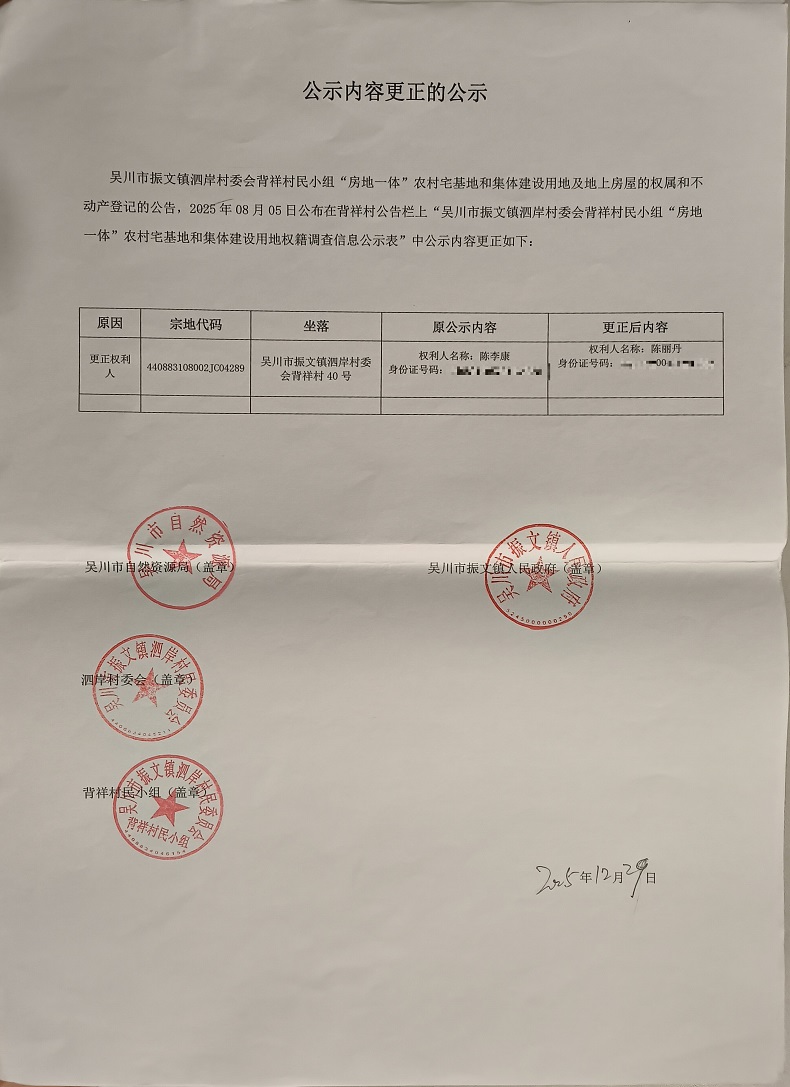 吴川市振文镇泗岸村委会背祥村民小组公示内容更正的公告.pdf