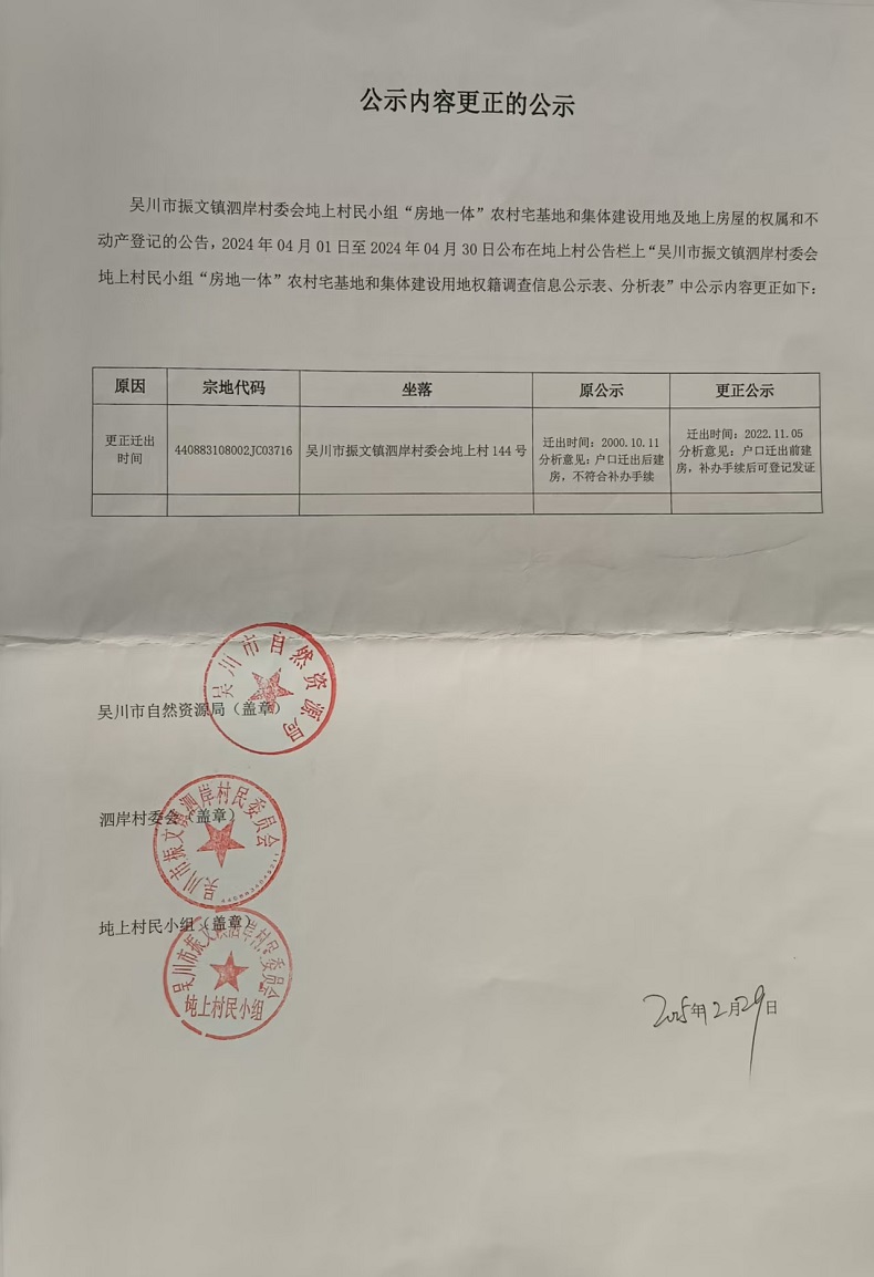 吴川市振文镇泗岸村委会坉上村民小组公示内容更正的公告.pdf