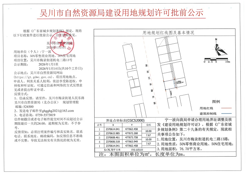 吴川市自然资源局建设用地规划许可批前公示(宁一波)