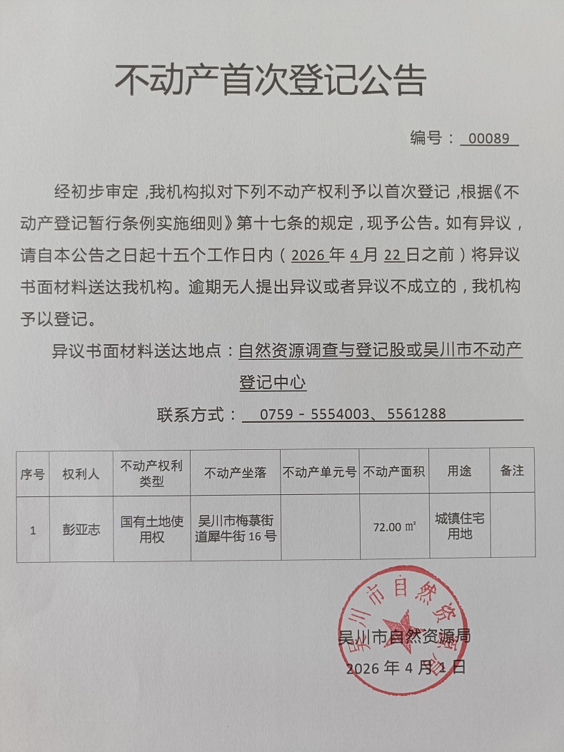 主办单位:湛江市吴川市自然资源局 联系方式:0759-5562511