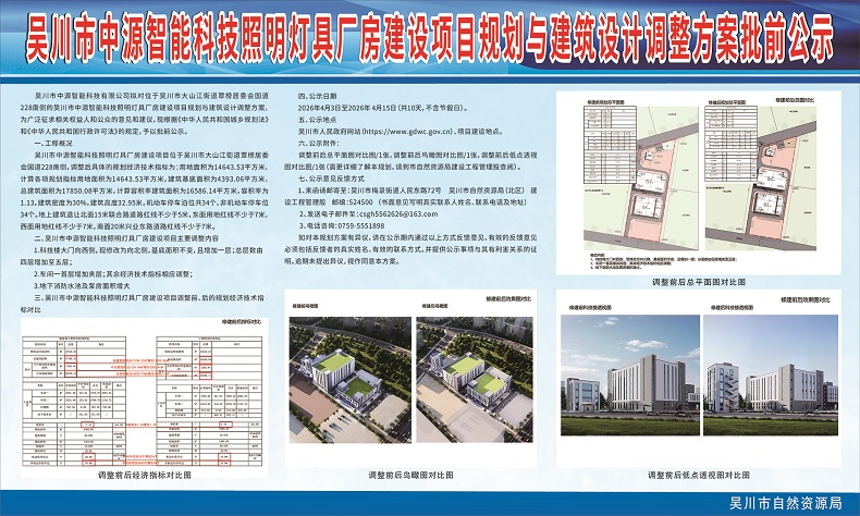 吴川市中源智能科技照明灯具厂房建设项目规划与建筑设计调整方案批前公示