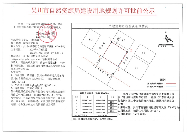 吴川市自然资源局建设用地规划许可批前公示(杨水金)